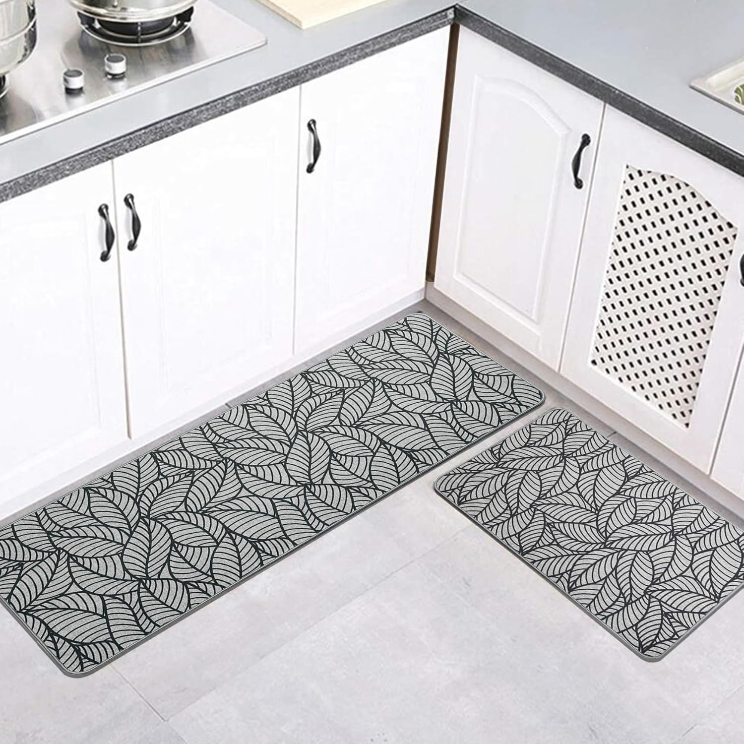 EVIDECO French Home Goods Set of 2 Jungle Printed Kitchen Mats - Gray Leaves Design - Stylish & Durable - Ideal for Homeowners & Renters - Non Slip & Comfort Floor Mat