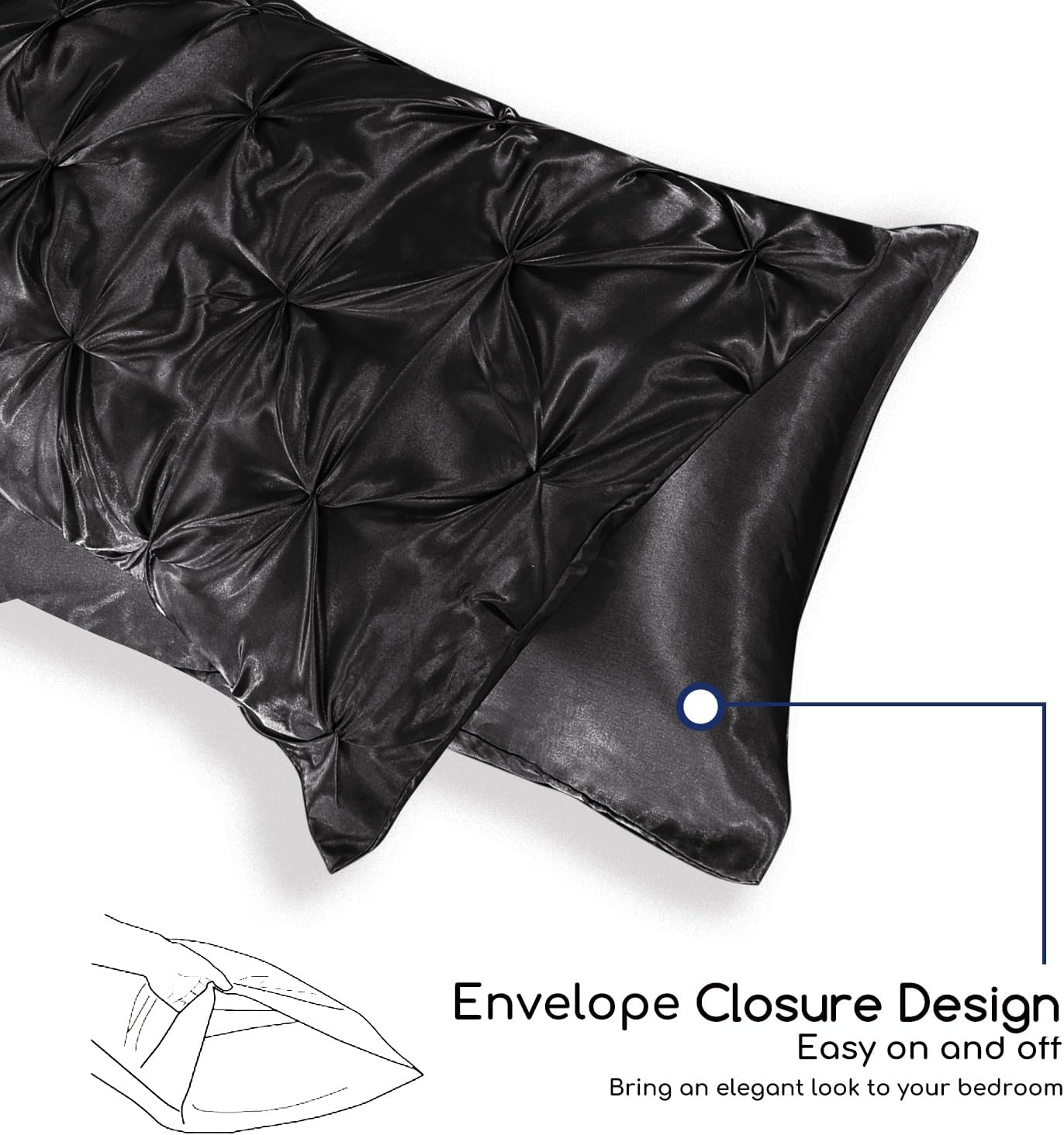 MR&HM Satin Comforter Queen 7 Pieces - Luxurious Pinch Pleat Bedding Set with Comforter, Flat Sheet, Fitted Sheet, Pillowcases & Shams, Super Silky Soft Bed Set for All Season (Queen, Black)