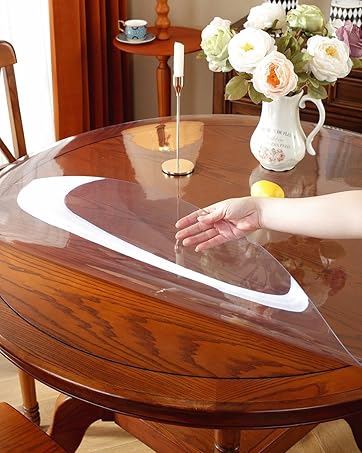 OstepDecor Round Clear Table Protector 48 Inch Thick Clear Table Cover Protector Round, Plastic Waterproof PVC Tablecloth, Vinyl Circle Table Top Protector for Dining Room, Coffee Tabletop