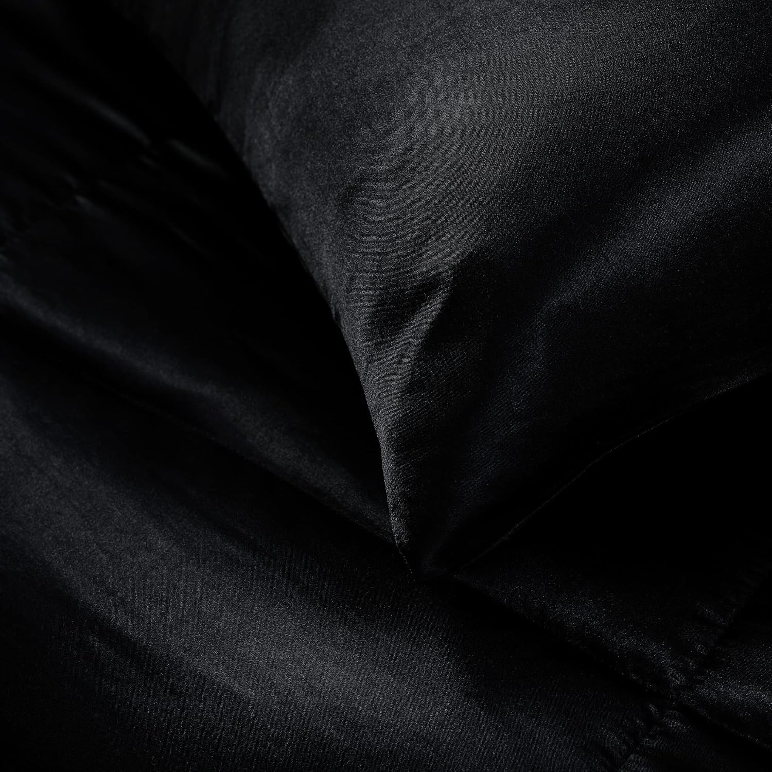 Whale Flotilla 3-Piece Reversible Silky Soft King Size Comforter Bedding Set, Luxurious Satin Comforters Oversized with 2 Satin Pillowcases, Lightweight Duvet for All Seasons, Black