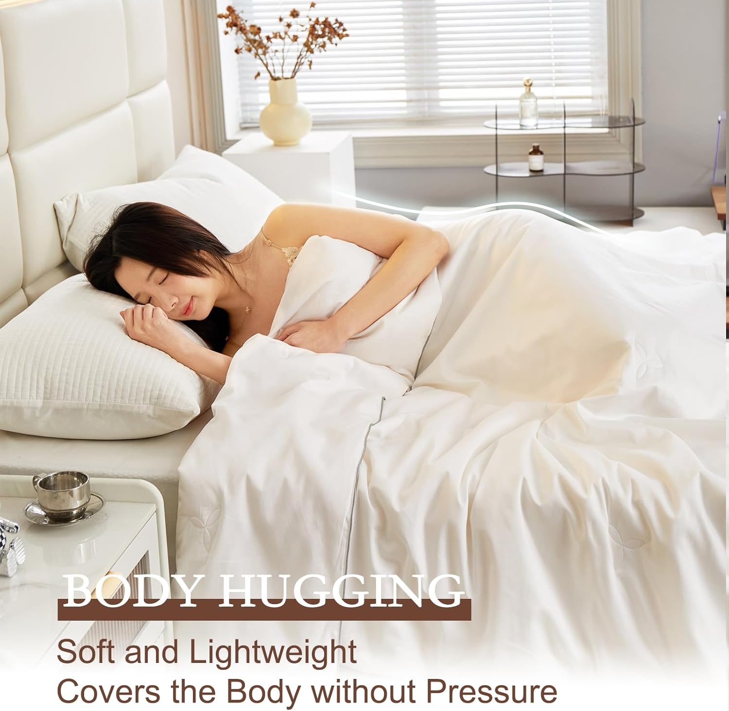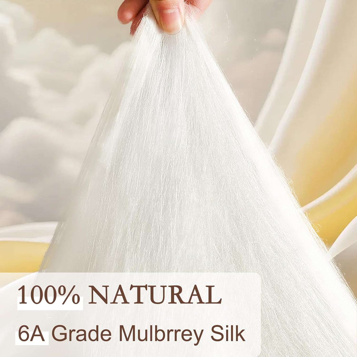 YOUR MOON Pure Mulberry Silk Comforter Queen Size for All Season,100% Natural Long Strand Silk Fill Duvet, Luxury Bedding, Noiseless Cotton Shell (White)